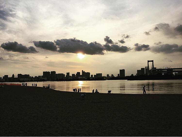 Next stop: Odaiba/ Tokyo Bay – We took the Yurikamome rapid transit train across the Rainbow Bridge to Odaiba (お台場) – which is a large island in Tokyo Bay. Odaiba is a mixture of major commercial, residential and leisure – it would be fabulous to be able to live in this area, there’s so much going on! We walked along the beach, dipped our feet in the bay, and watched the gorgeous sunset over Tokyo Bay.