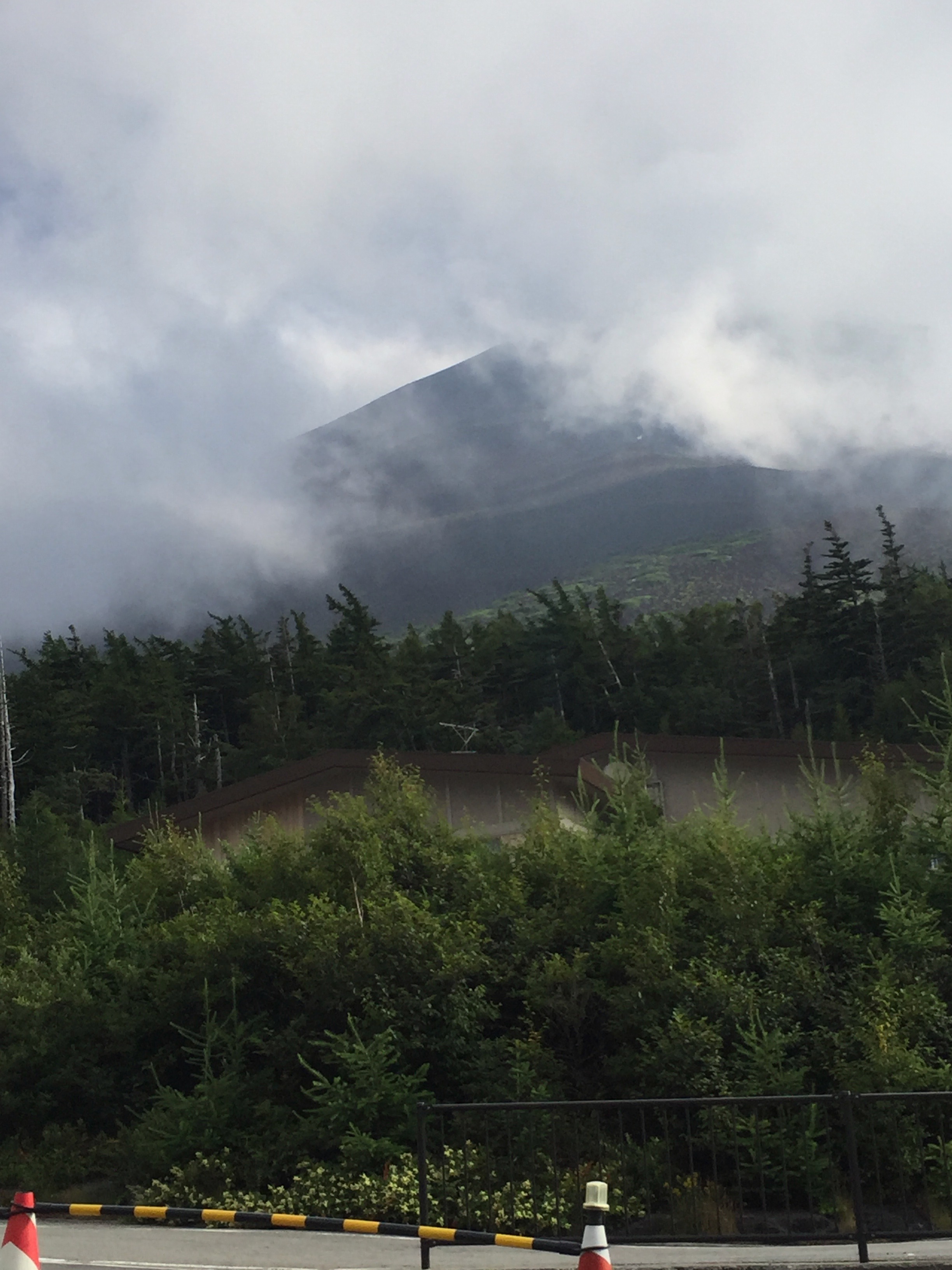 We went up to the 5th station, which is at 2,305 m. Check-in at the base of Fuji called for sunny skies, but it was not so. The weather on Fuji-san is volatile and changes by the minute. It can be clear one minute and the clouds can roll in the other minute totally obscuring your view. The weather Gods were not with us this day, we never saw the summit. It was only 8º Celsius.