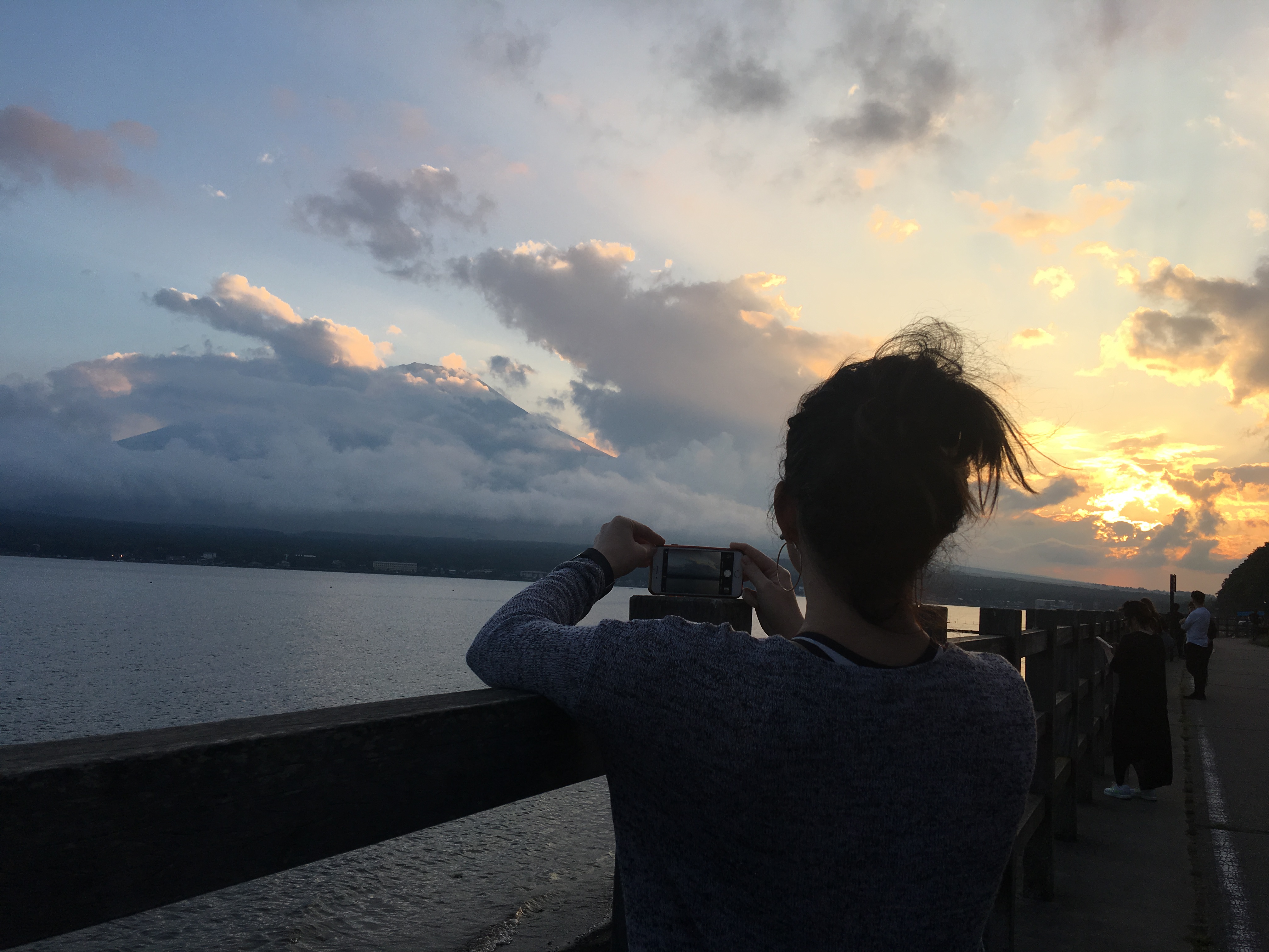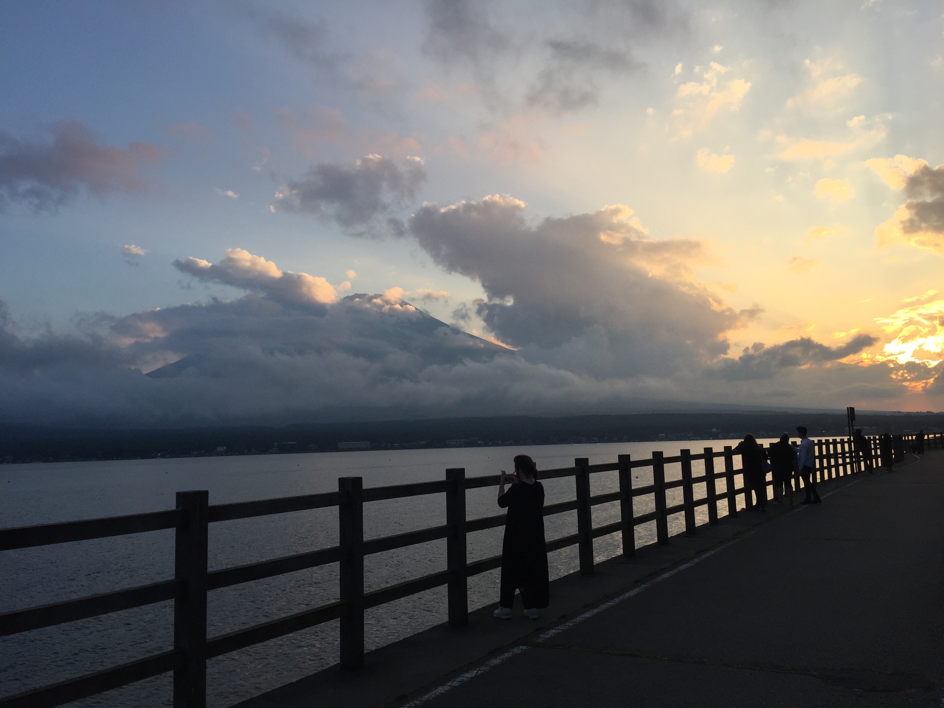 We took the scenic route home and drove through the mountain ranges and some of the The Fuji Five Lakes at the northern base of Mount Fuji at about 1000 meters above sea level. We stopped at Lake Yamanaka (山中湖) to take in the sunset and breathtaking views of Mr. Fuji, even though she was still partially obstructed by cloud cover.