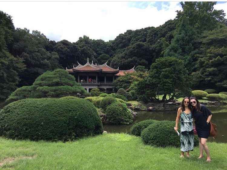 What a great day for a completely unplanned one! Linda and I spent the day exploring near Shinjuku Station. We went to Shinjuku Goyen National Garden, a gorgeous garden space in the middle of this bustling city. The garden, which is 58.3 hectares, blends three distinct styles: a French Formal, English Landscape and Japanese traditional. A traditional Japanese tea house can be found within the gardens. We visited Kyu Goryotei (also referred to as the Taiwan Pavilion) which was built on the occasion of the wedding of the Showa Emperor.