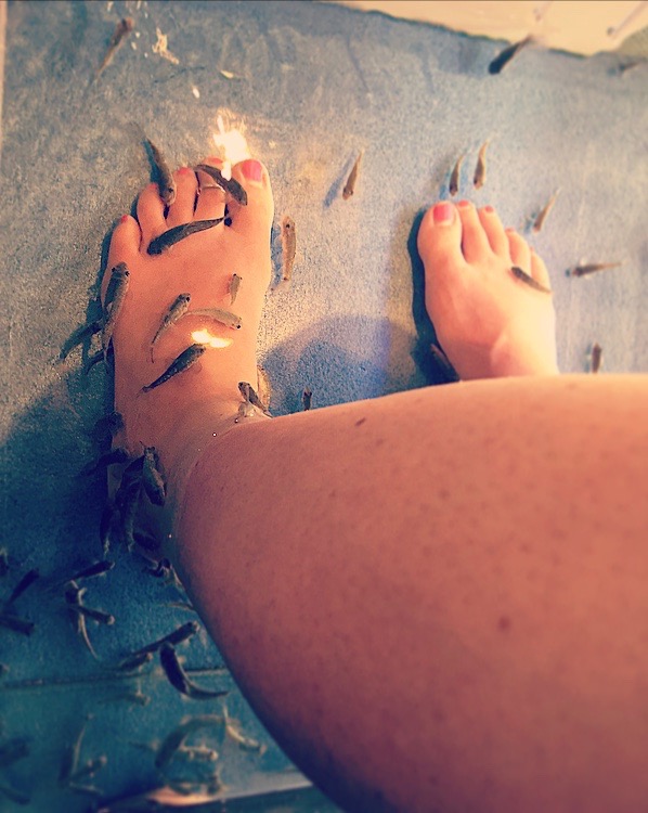 Fish Pedicure: We scooted over to Shinjuku by subway so that Lucas and I could have a fish pedicure aka Dr. Fish. I was excited to try this as I had heard so much about it. We soaked our feet in tanks of hungry Garra rufa fish. The small, toothless fish gently ate the dead skin and left the healthy skin untouched. For ¥1050 , it was worth the experience – but if you’re wanting an actual pedicure – pay for the real thing.