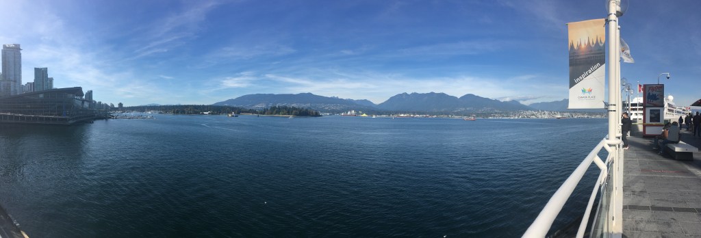 Canada Place is situated on the Burrard Inlet waterfront of Vancouver. The building’s exterior is covered by fabric roofs resembling sails. It is also the main cruise ship terminal for the region (cruises to Alaska originate here). We were lucky that there were two cruise ships docked at the time of our visit. I’ve never been on a cruise before, so I was awestruck at the sight of these mighty ships.