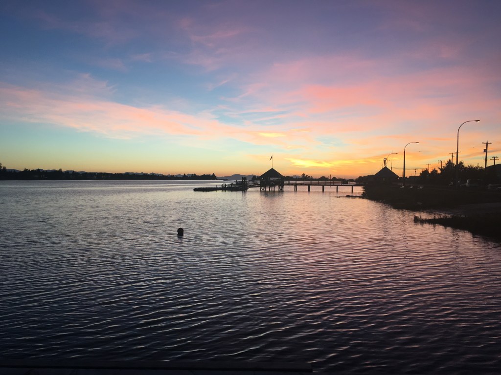 We had the best seats in the house, on the patio, at the edge, overlooking the water – the restaurant lets you sit and watch the arrival and departure of the Harbour Air seaplanes on the Middle Arm of the Fraser River. The sunsets, look at that sunset, amazing!