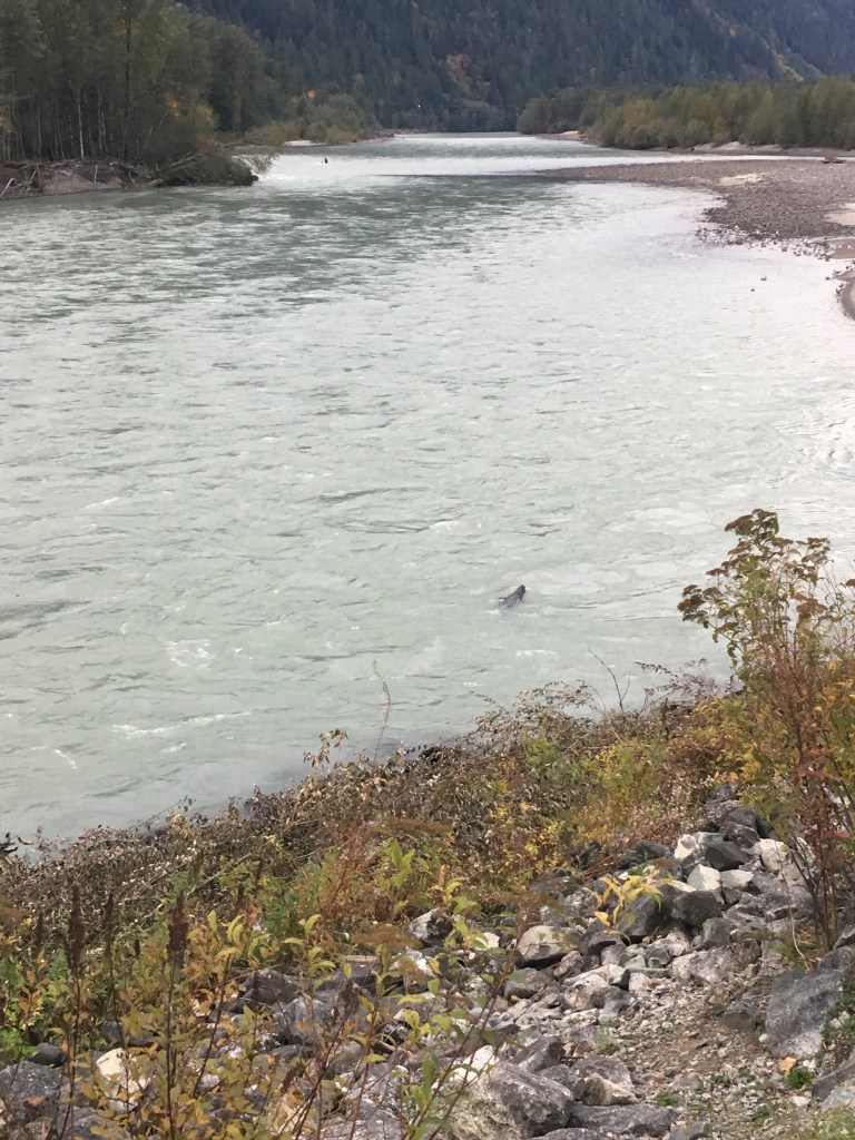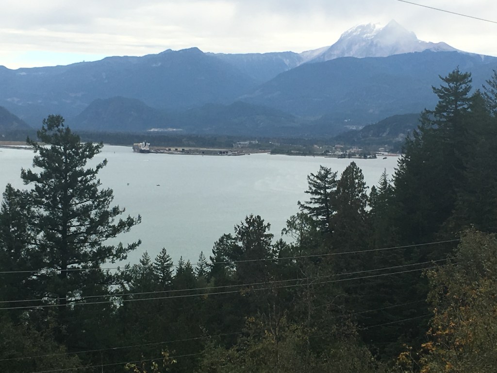We had dinner at The WaterShed Grill in Brackendale, BC (I didn’t even know it wasn’t in Squamish til I looked up the address). I am strongly recommending this place – the view is stunning – mountains and the Squamish River (we saw a sea otter in the river), and the food was INCREDIBLE. I had the salmon burger (5 oz of sockeye salmon with wasabi mayo on a brioche bun) and the roasted tomato soup – it was to die for!