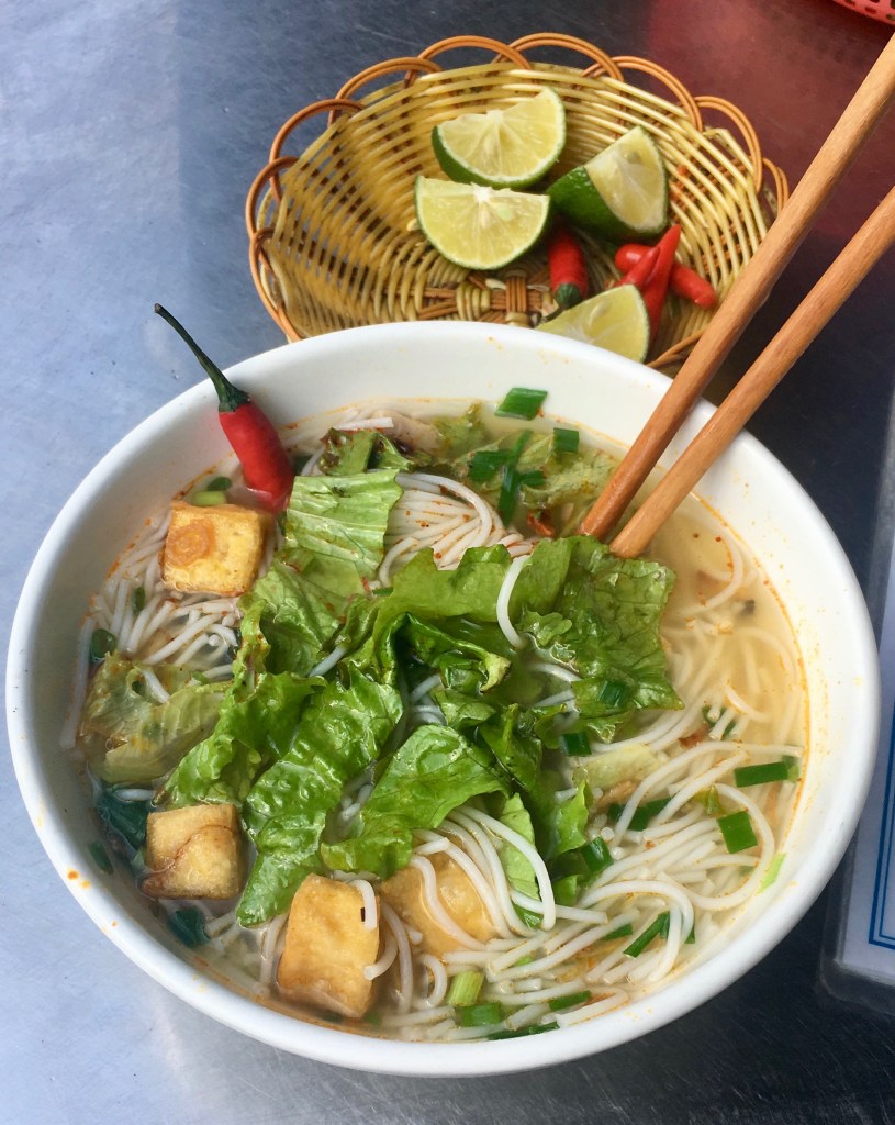 (2) Bún Rieu – LOVED this, I first tried this in Ha Noi – it was incredible. See below for the types of Bún Rieu I wasn’t so fond of. Freshwater crab flavours this soup, which is made with rice vermicelli and topped with pounded crabmeat and deep-fried tofu. Chillies, lime and fresh herbs add the finishing touches.