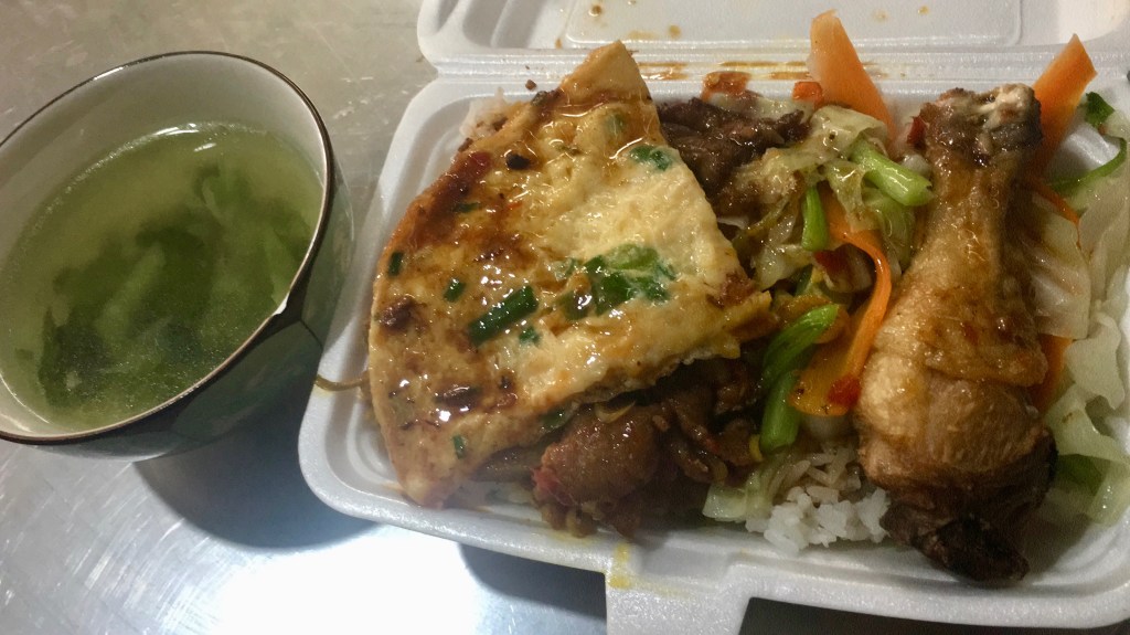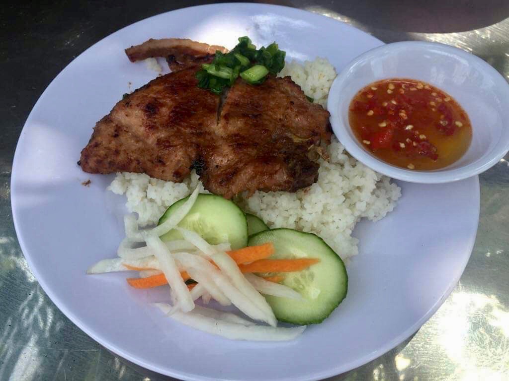 5) Cơm tấm – broken rice and pork chop – very basic meal – but reliable, inexpensive and yummy. Usually served with pickled veggies and a side soup for about 20K – about $1.15 CDN.