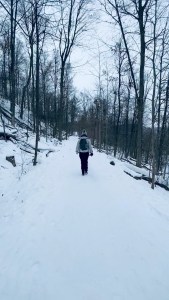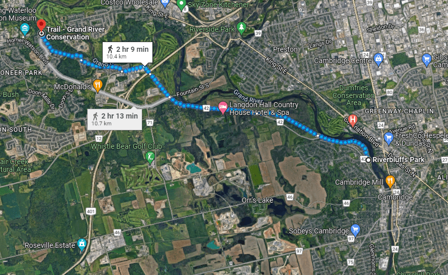 Kilometre zero for the first half of the trek commenced in Cambridge at Riverbluffs Park. My friend Miranda with whom I completed last year’s epic adventure, along with her cousin Debbie set out on a cold snowy Saturday toward the trailhead at the Grand River Conservation on Mill Park Drive, Kitchener where I would meet up with my long-time friend Barb. From there she’d join me on the return trek via the same route.