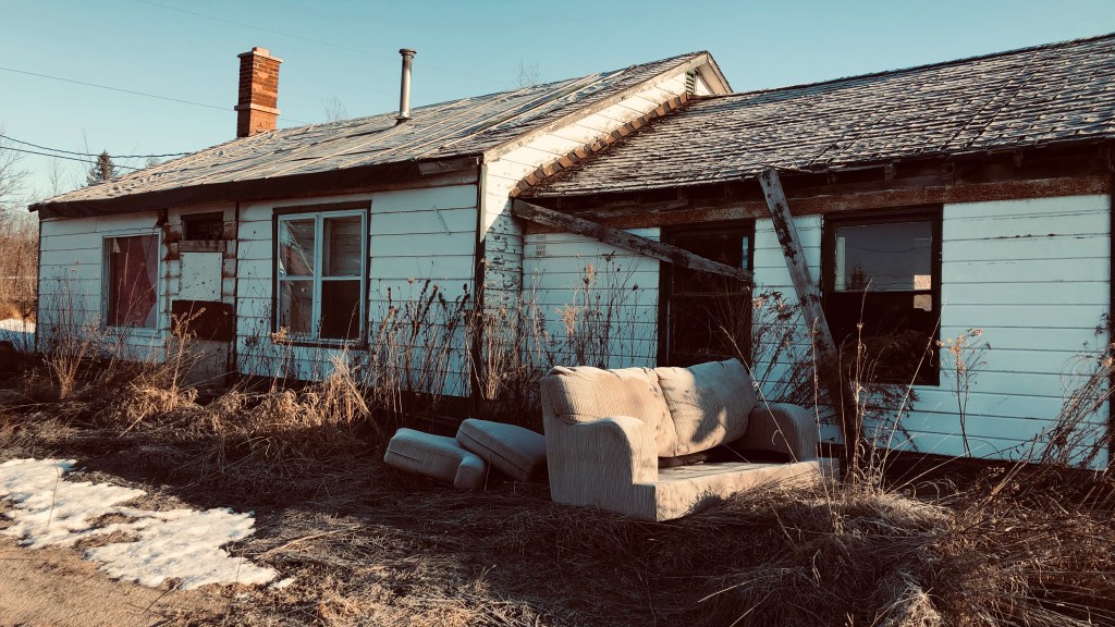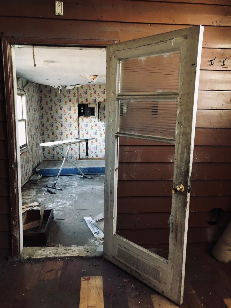This first property isn’t a heritage home by any stretch, but it definitely has character. Built in phases, the central section appears to be the original core of the house, while the far-right addition seems to have served as a bedroom. You can still make out the exterior walls and door frames of the addition, a quiet reminder of how the home grew over time.