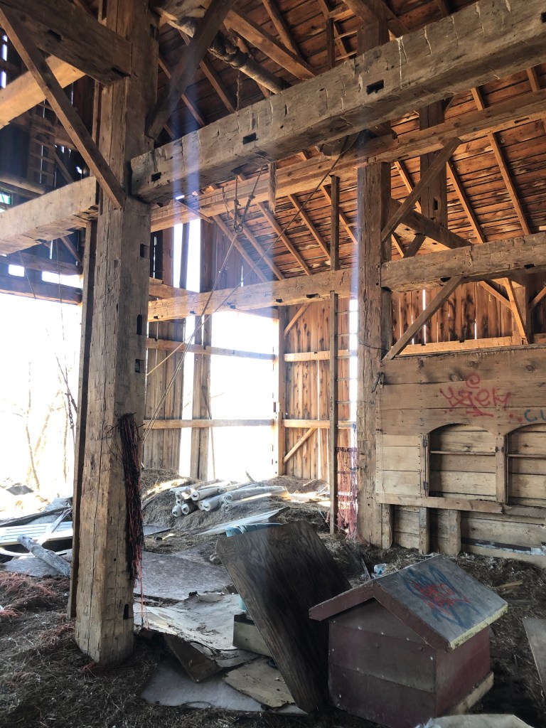 The standing barn, however, was wide open, giving us a chance to explore. Its wooden frame, old hardware, and lingering scent of hay and earth tell a story of real farm life long after the farmhouse was left behind.