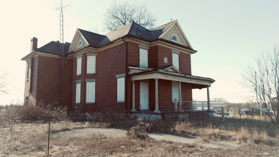 This farmhouse has been abandoned and boarded up, with much of the original landscaping removed over the years. While there was an entry at one point, it has recently been re-boarded, so we were unable to enter, which is fine.