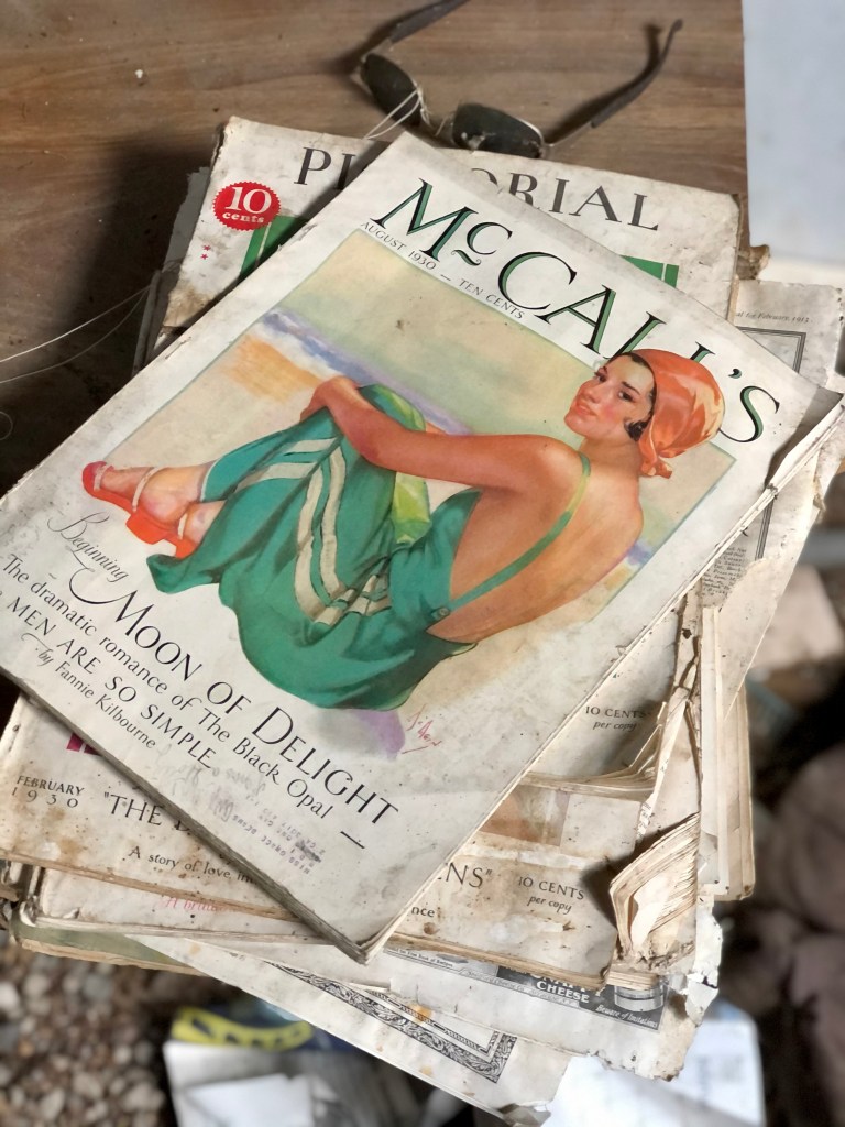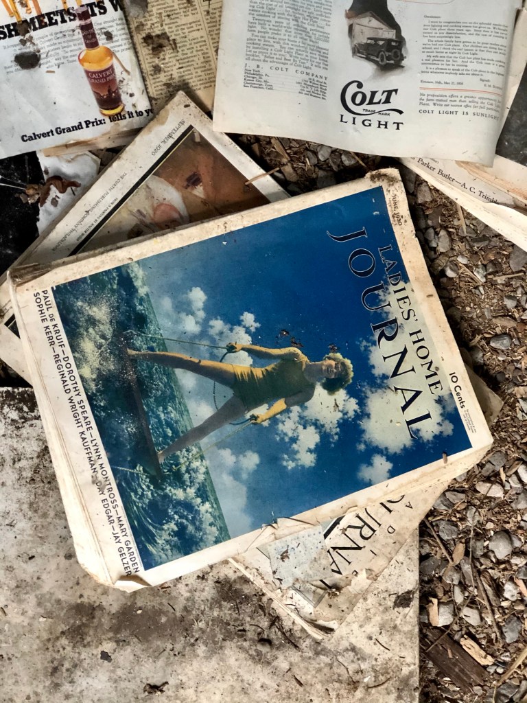 The most interesting items of this exploration seem to be in the decayed addition at the rear of the house. The roof has partially caved in. Here we found old magazines – mainly from 1926 and 1930, an old Sears cash register and 4 deer hoofs, amongst other things.