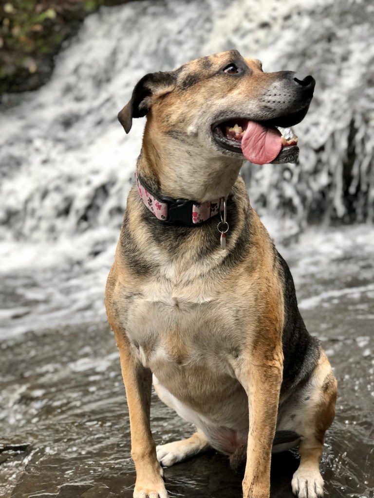 Before setting up the campsite, Ellie (my dog) and I decided to hike the Little Falls Trail. It’s a 3.1 km loop, rated as being moderate to difficult. The trail begins and ends at a point along the Mountain Portage Trail. It features a steep descent into the river valley, the picturesque Little Falls and a 30 metre ascent. I was totally out of breath. This was tough, but well worth it … check out these pics!