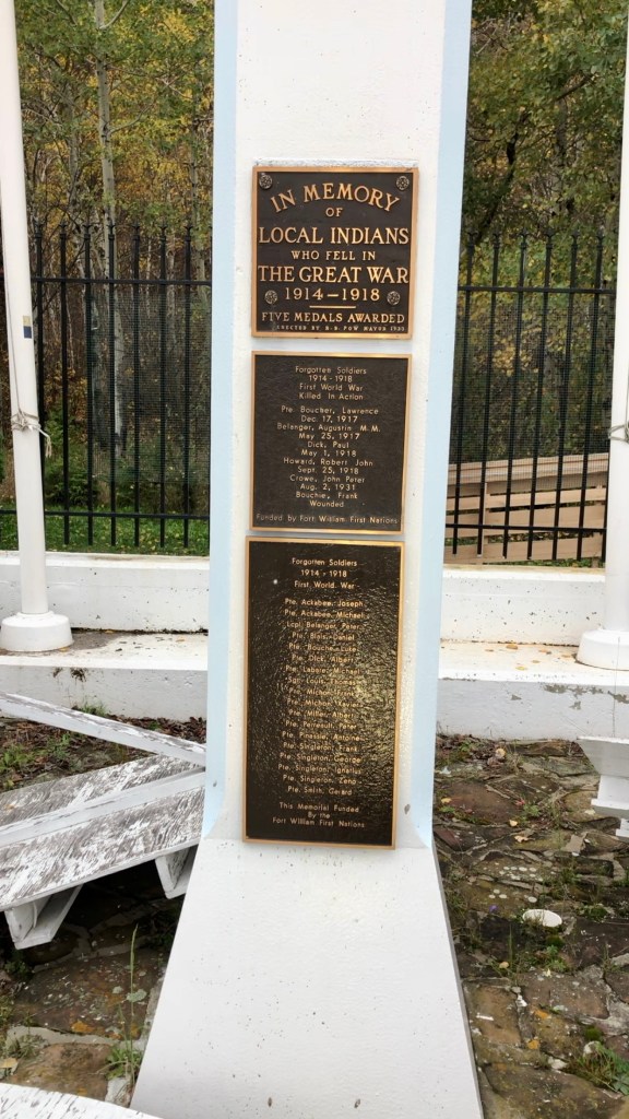 A small memorial commemorates indigenous people who fought in wars.