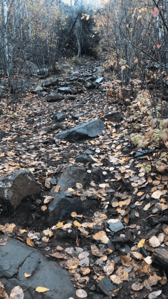 There is a path on the eastern face of the mountain that can be used for hiking. Drive toward the lookout parking lot – a gravel parking lot to the left, a few mins past the toll booth, you’ll see a sign that says “Welcome to Mount McKay Lookout”, the trailhead is to the left of the parking lot. The hike is VERY steep and took me 40 mins to summit. It is ALL straight uphill with some narrow sections and loose rocks, and the views are worth it! Would definitely recommend, especially in autumn.