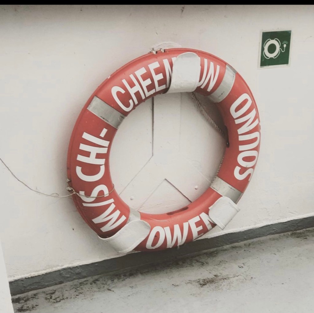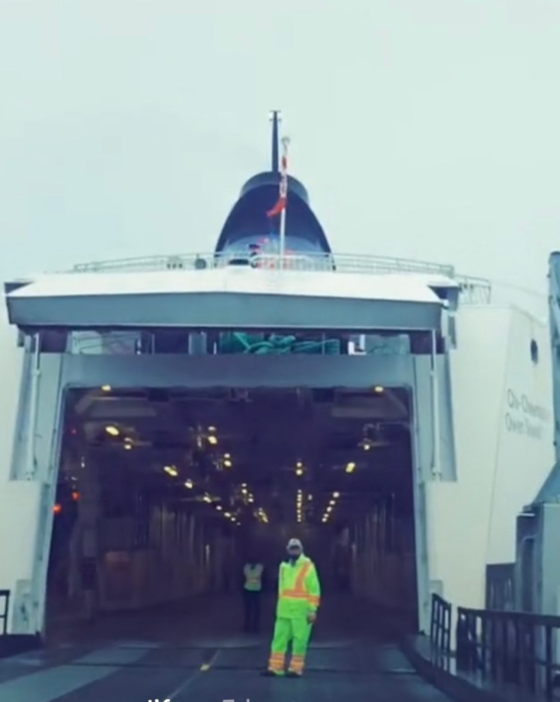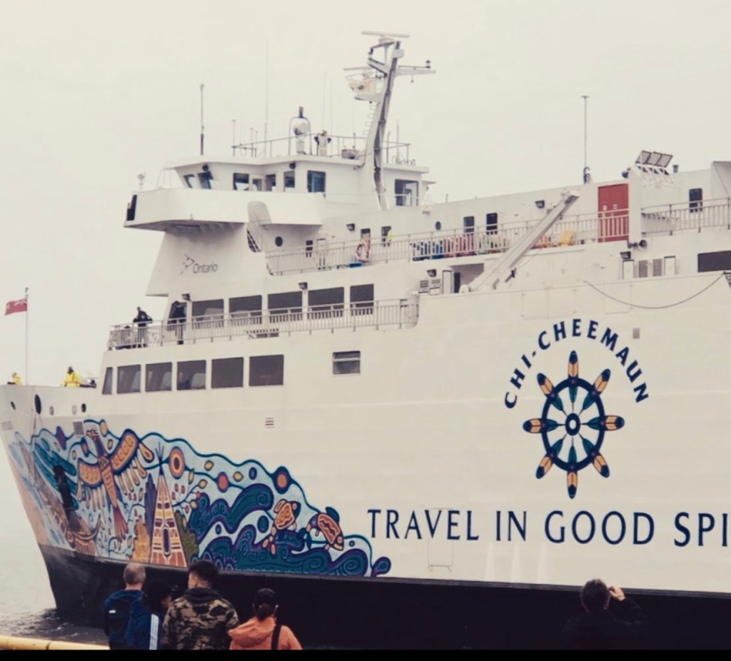 Perfect timing, as we finished our hike, we heard the horn of the Chi-cheemaun as it entered port, so I quickly grabbed a slice of pizza and went back to my SUV to await the board.