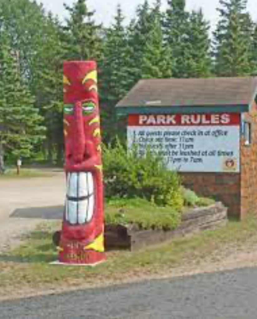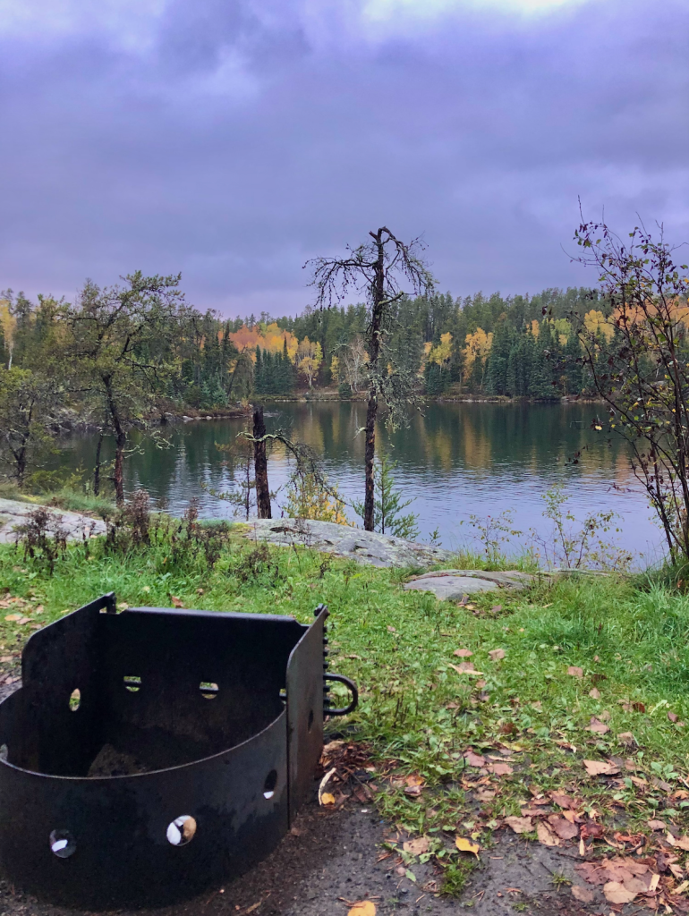 Much later than anticipated, we arrived at Rushing River Provincial Park, our home for the night. Having arrived late, we missed “check-in,” and the park office was closed – firewood and kindling are sold at the park office, so we were SOL for any firewood, and it still had not stopped raining!