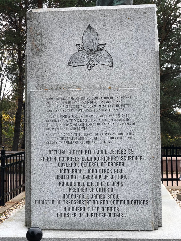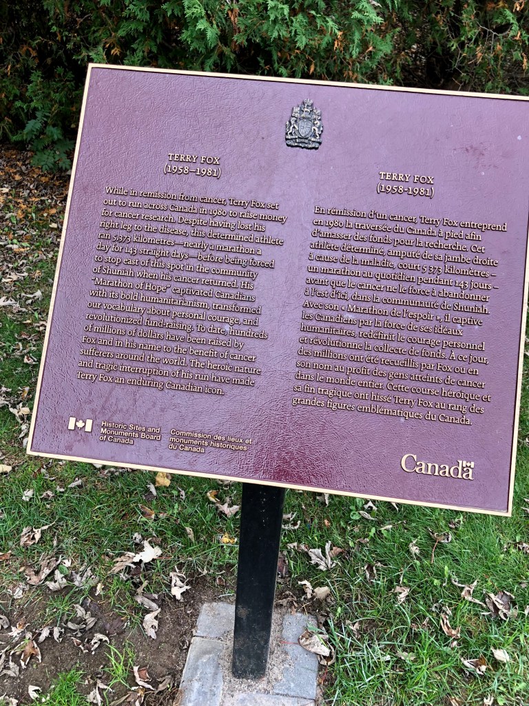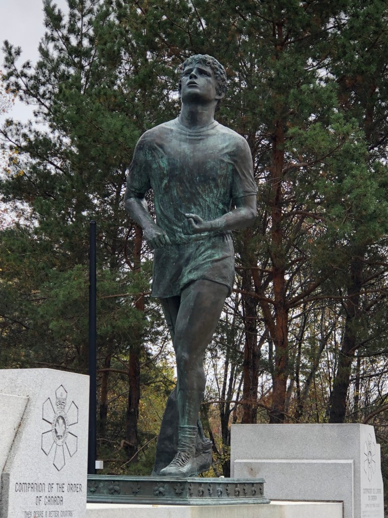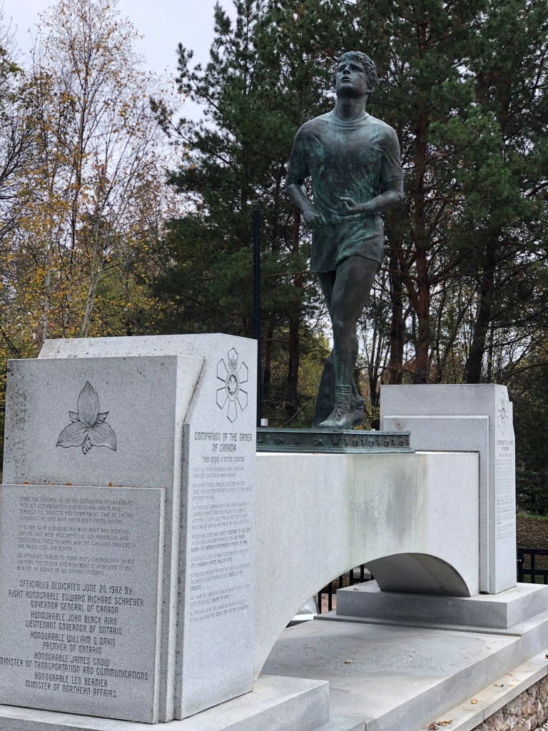 A little east of Thunder Bay, Ontario, is a monument dedicated to Terry Fox, the 21-year-old Canadian amputee who mounted the Marathon of Hope campaign and attempted to run across Canada in 1980 to raise money for cancer research. Terry started his journey on April 12, 1980, in St. John’s, Newfoundland, and set out to run a marathon a day, all the way across Canada.