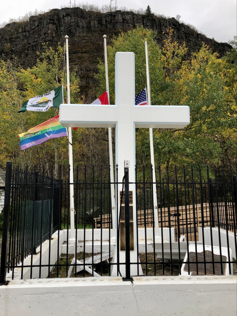 On the way up the mountain road, to the left, you will find a memorial to the Ojibway elders.