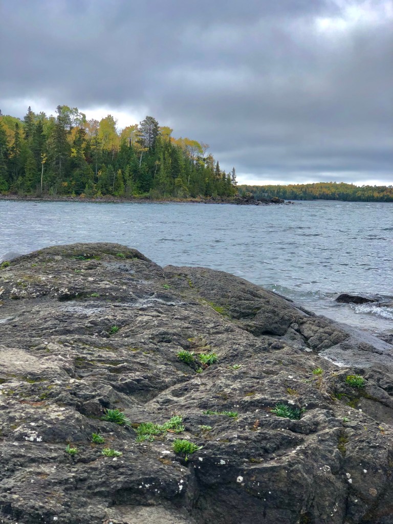 Not too much further down the hwy we came to Katherine Cove. This beautiful sandy beach is on the shore of Lake Superior. Picnic tables, benches and a restroom are available for visitors to utilize. A short yet demanding Coastal Trail from the beach will lead you to the natural wonder, Bathtub Island. Which, as you’ve heard me say a few times now … if I had more time, I would have loved to hike it.