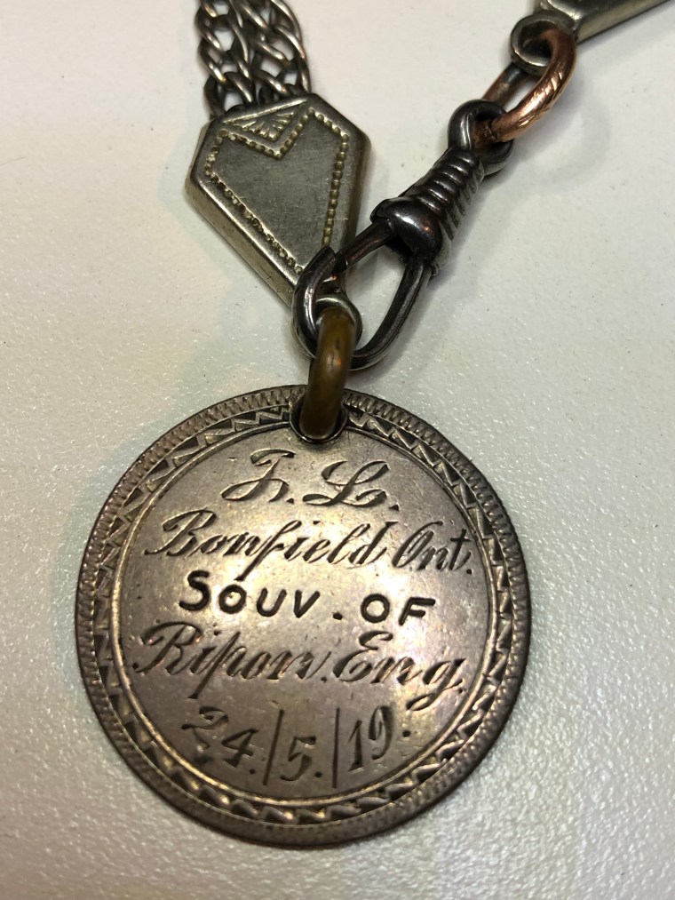 This small object serves as a deeply personal memento: a connection to his life in Ripon, a reminder of service and survival, and a silent testament to the experiences he carried back to Bonfield. Even decades later, it whispers a story of a young man far from home, keeping a piece of that time close to his heart.