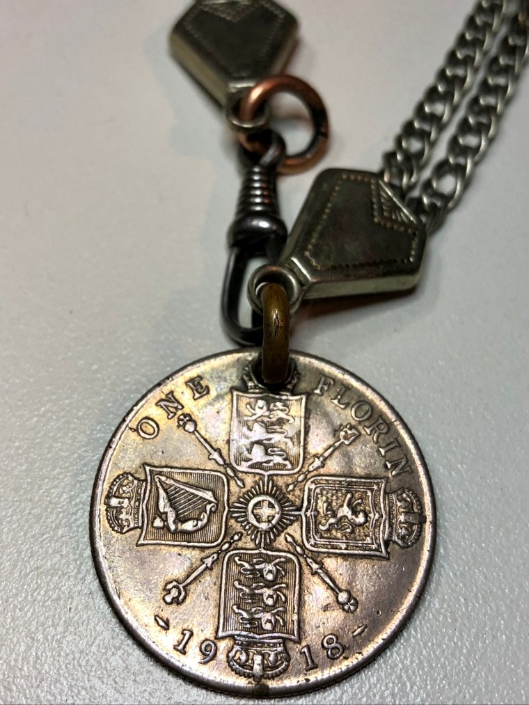 May 24, 1919: While stationed in Ripon, England, Émile had a small custom medallion made. The front mimics a British Florin coin, while the back is engraved with the initials “FL” and the inscription: “Bonfield, Ontario – Souvenir of Ripon, Eng 24/5/19.”
