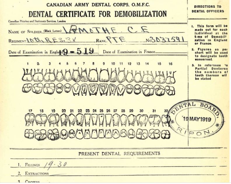 May 19, 1919: Dental Exam for demobilization in Ripon