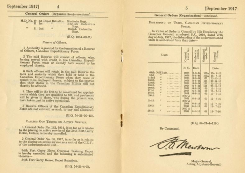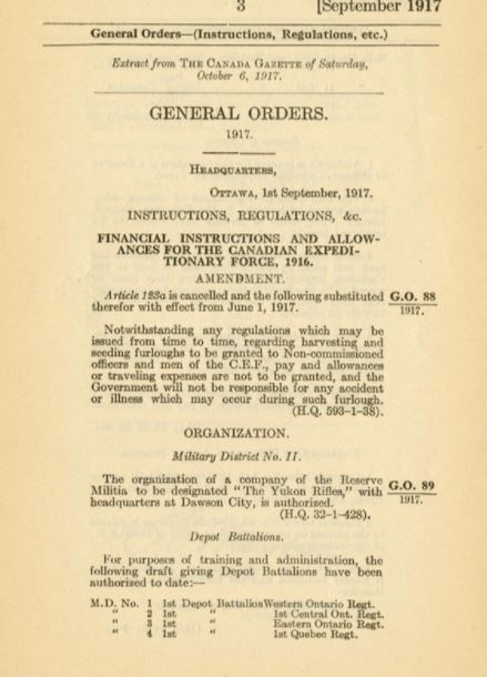 1917-1918: When it became impossible to recruit enough men for infantry battalions, Canada organized depot battalions. These units trained soldiers who would then be sent to Canadian Reserve Battalions in England as reinforcements for front-line units.