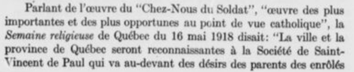 I found this from the book Le Chez-nous du soldat: oeuvre de la Société de Saint-Vincent de Paul, fondée à Québec en avril 1918: