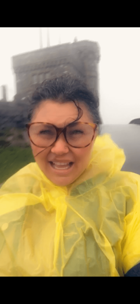 The tour wasn’t cancelled, I thought it would be. I suspect living on Canada’s east coast, they’re used to high winds and stomach-churning waves. So, we pressed on. As far as I was concerned, it was part of the true Newfoundland experience. Anyone could visit during a gorgeous sunny day, but not everyone gets to experience an extratropical cyclone.