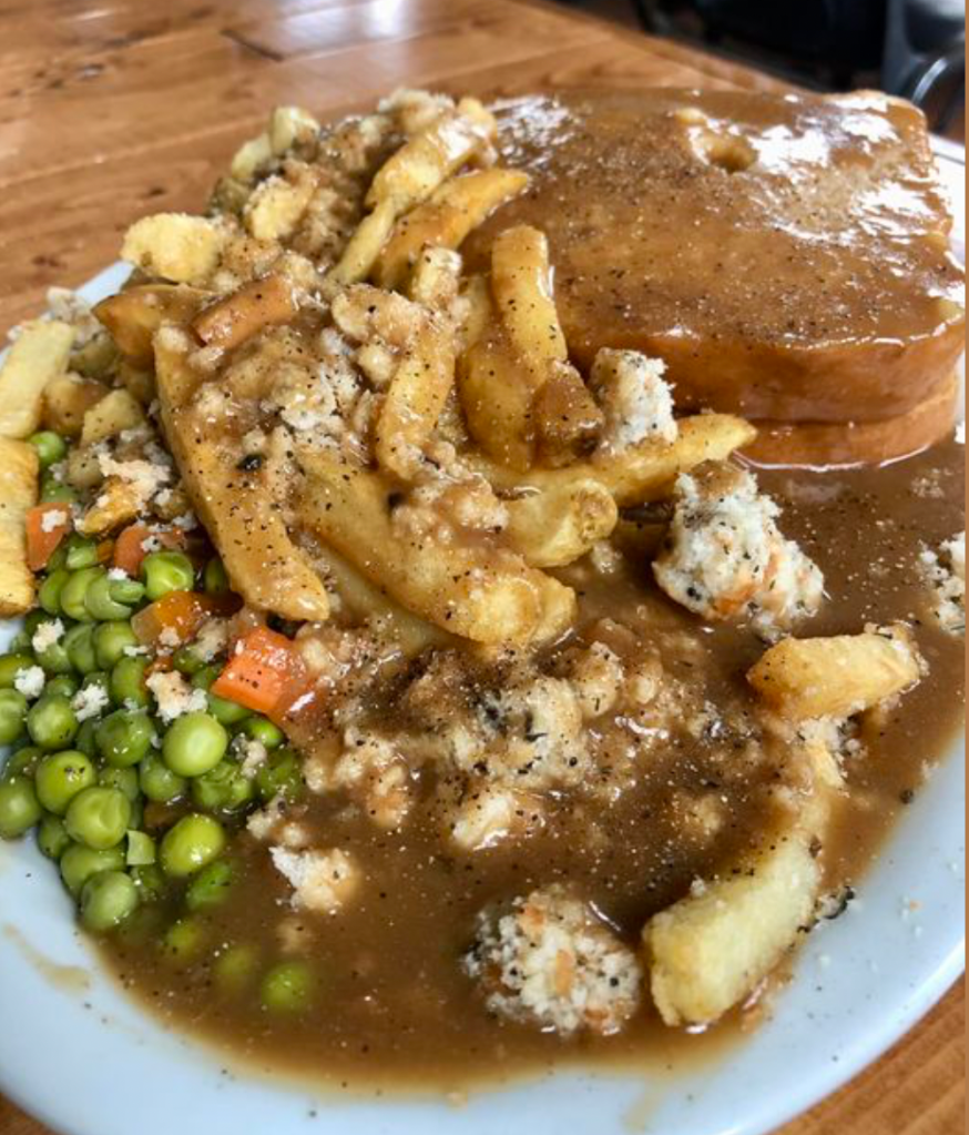 The whole menu looked good, but I went with the Newfoundland fries. Never heard of them? Well, you’re missing out. Similar to poutine, this gravy-smothered dish is Newfoundland‘s best-kept secret. Crispy fries are covered in a dressing or stuffing flavoured with savoury spice and topped off with rich beef gravy and peas. The result is a delicious cross between Thanksgiving dinner and your favourite late-night snack.