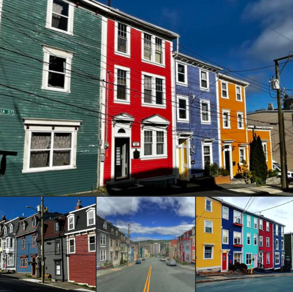 In the 1960’s, the houses were drab and darkly painted. The colour came as part of St. John’s downtown revitalization project. The row houses in the late 1970’s began to be painted until it spread across the downtown, resulting in the colours of St. John’s.