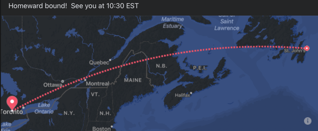 Departed from Pearson International Airport (YYZ) in Toronto, Ontario and flew into St. John’s International Airport (YYT), which is located just about 10-15 minutes northwest of the downtown core, where my hotel was located on Duckworth St.