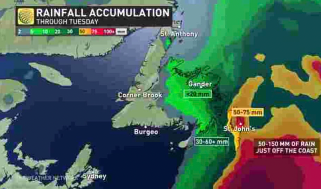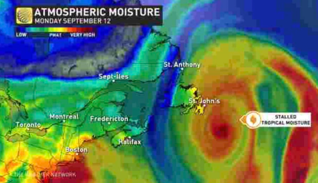 During a 36-hour period from September 10th-12th, 7-8 inches of rain fell in the St. Johns area, causing overflowing along the Waterford River, which led to a large amount of urban flooding. Similar rainfall amounts were also observed in communities throughout the Avalon Peninsula.