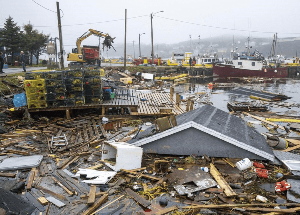 Communities in southwestern Newfoundland were left grappling with significant damage, including lost homes, flooding and road washouts due to post-tropical storm Fiona. Everything east of town hall in Port aux Basques was under an emergency evacuation order as the town was pounded by severe winds and a storm surge. The town ordered residents near the coast leave their homes. Power lines were down, the town hall was flooded, and multiple roads were washed out. Port aux Basques was the worst affected, with reports of around 10 to 12 buildings and homes being swept out to sea by the storm surge and high waves. Around 200 residents have been displaced, and one person was washed out to sea from her home.