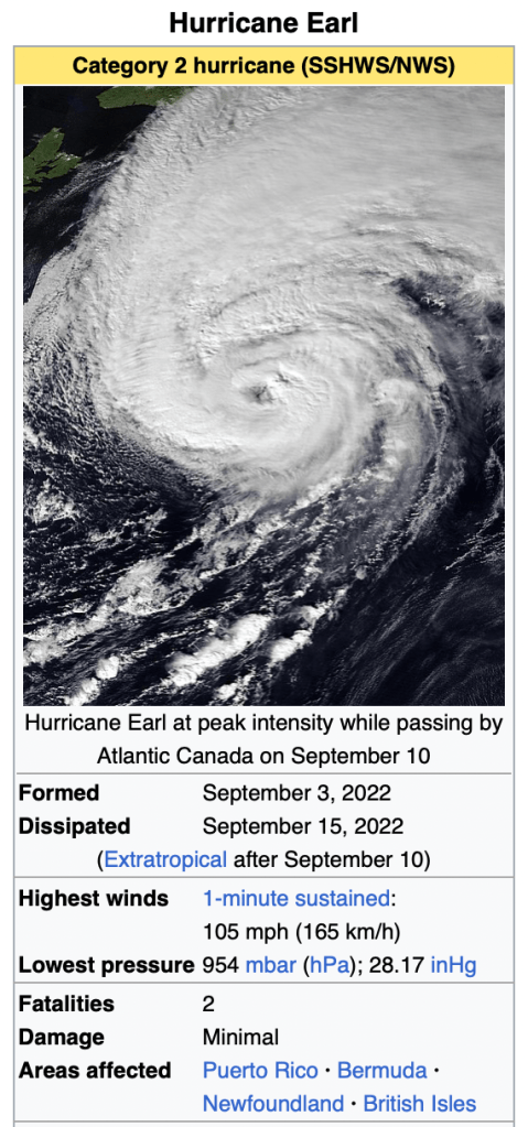 It was the sixth named storm, third hurricane and first major hurricane of the 2022 Atlantic hurricane season after Earl, whom I had just left.