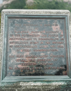 The first transatlantic wireless signal was received by Marconi on this spot on December 12, 1901.