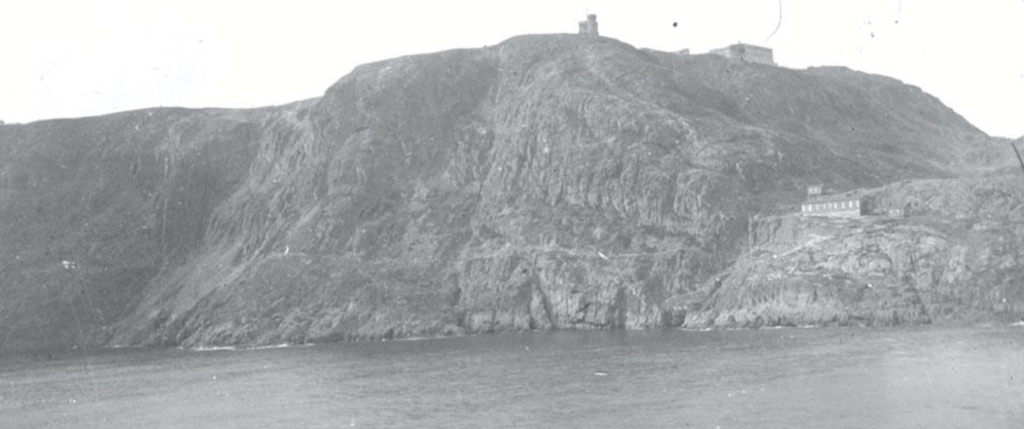 In December 1901, Marconi assembled his receiver at Signal Hill, nearly the closest point to Europe in North America. He set up his receiving apparatus in an abandoned hospital (hospital no longer exists, but in the photo below, you can see the outline of an L-shaped foundation) that straddled the cliff facing Europe on the top of Signal Hill.
