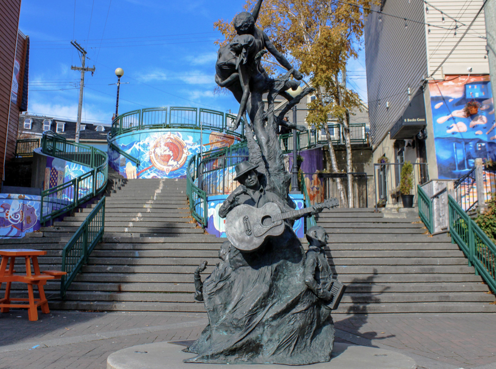 A Time by Morgan MacDonald is a 12ft tall sculpture located on George Street, the city’s famous entertainment area. It celebrates the performing arts in music and dance, honouring some of the province’s best-known artists: singer-songwriter Ron Hynes, accordion pioneer Wilf Doyle, and actor Tommy Sexton. The sculpture also serves as a memorial to the artists.